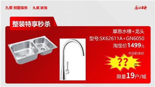 摩恩水槽+龍頭,型號(hào):12132MCL04+2298+M22039,淘寶價(jià)1299元,今日秒殺價(jià)??元(限量19戶/城)