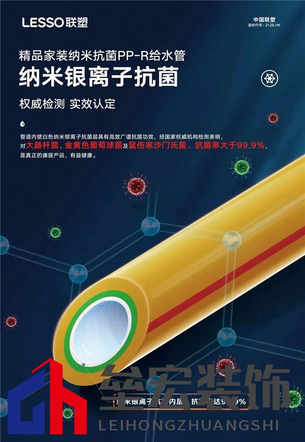 ??● 阻光抑菌,高效持久 ??聯(lián)塑納米系列抗菌管是在PP-R管的基礎(chǔ)上改進(jìn),它不僅具有PP-R管材的特性,而且具有顯著的抗菌效果,管材采用高科技抗菌材料納米銀離子,經(jīng)國家權(quán)威機(jī)構(gòu)檢測表明,對大腸桿菌、金黃色葡萄球菌及鼠傷寒沙門氏菌抗菌率達(dá)90%以上,有效抑制細(xì)菌、藻類滋生!