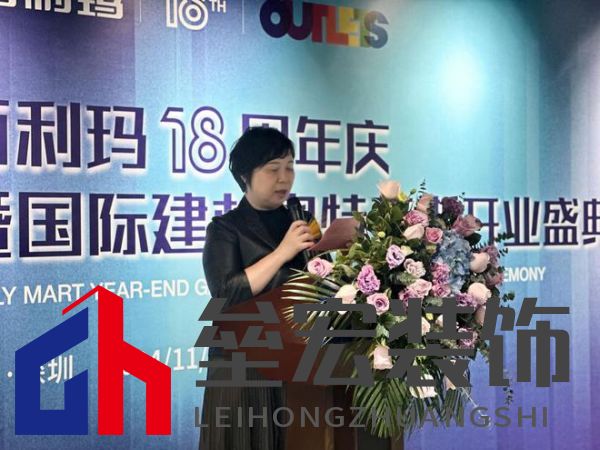 金鋼柏林李文娟女士 金鋼柏林李文娟李總代表百利瑪奧萊品牌上臺致辭,她表示百利瑪國際建材奧特萊斯的理念與金鋼柏林高度契合,未來,金鋼鉑林將繼續(xù)與百利瑪緊密合作,共同打造一個誠信經(jīng)營、服務(wù)優(yōu)質(zhì)、產(chǎn)品豐富的建材“淘寶店”。