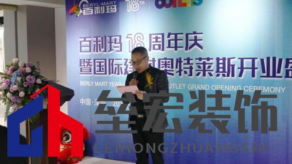 廣東省裝飾行業(yè)協(xié)會秘書長詹炳軍先生 隨后,廣東省裝飾行業(yè)協(xié)會秘書長詹炳軍先生上臺致辭,代表協(xié)會對百利瑪國際建材奧特萊斯項目送上美好祝福和對未來合作的期待。