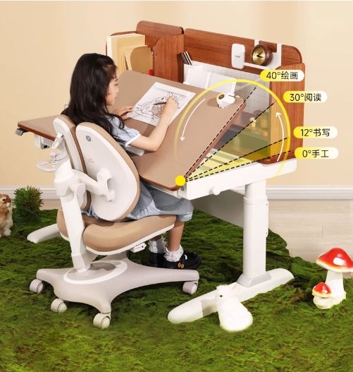 ??政策導(dǎo)向:健康學(xué)習(xí)環(huán)境已成國(guó)家戰(zhàn)略 ??根據(jù)國(guó)家衛(wèi)健委發(fā)布的《近視防治指南(2024年版)》,兒童青少年近視防控需從“讀寫姿勢(shì)、用眼時(shí)長(zhǎng)、環(huán)境光照”三方面入手,要求課桌椅高度需動(dòng)態(tài)適配身高,讀寫時(shí)保持標(biāo)準(zhǔn)坐姿,并通過視距管控減少近距離用眼負(fù)荷。同時(shí),《脊柱彎曲異常防控技術(shù)指南》強(qiáng)調(diào),學(xué)校應(yīng)配備可調(diào)節(jié)課桌椅,家庭需避免因桌椅不適導(dǎo)致脊柱受力不均,鼓勵(lì)使用符合人體工學(xué)的學(xué)習(xí)裝備。這些政策不僅將健康學(xué)習(xí)環(huán)境納入教育考核體系,更從技術(shù)層面為產(chǎn)品設(shè)計(jì)指明方向。而光明園迪學(xué)習(xí)桌椅的研發(fā)邏輯,恰好與這些要求形成精準(zhǔn)呼應(yīng)。 ??科學(xué)設(shè)計(jì):以功能創(chuàng)新破解健康難題?? ??光明園迪學(xué)習(xí)桌椅的核心理念是“自然正姿”,通過多項(xiàng)專利技術(shù)幫助孩子自主保持正確坐姿,減少外界提醒的依賴性。其設(shè)計(jì)亮點(diǎn)包括: ? ??1. 動(dòng)態(tài)適配的桌椅調(diào)節(jié)系統(tǒng) ??桌椅高度支持3-18歲全學(xué)齡段調(diào)節(jié),搭配可視化角度顯示器,家長(zhǎng)可根據(jù)孩子身高精確設(shè)定桌面傾斜角度:書寫時(shí)12°減少手腕壓力,閱讀時(shí)30°使書本與視線垂直,避免低頭導(dǎo)致的頸椎負(fù)擔(dān)。這一功能直接響應(yīng)政策中“課桌椅適配身高變化”的要求,從源頭上杜絕因桌椅高度不當(dāng)引發(fā)的駝背問題。 ?