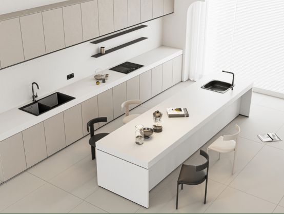 蒂羅寶攜手全球抗菌技術(shù)專家美國妙抗保?,在臺面制造過程中,內(nèi)建SilverShield??抗菌技術(shù);采用高純3A 級天然石英砂 + 柔拋技術(shù) , 表面溫潤如玉 , 極致觸摸手感?, 物理亮度達(dá)50度以上 , 更致密、更耐候、更抗污;源于高山、流水、云海、雪原等自然景觀的靈感?, 以極簡、干凈、明亮、潔凈的產(chǎn)品開發(fā)理念?, 完美貼合高質(zhì)高端烹飪區(qū)域臺面需求。 抗菌石英石臺面優(yōu)勢: 可與食品直接接觸 減少交叉污染的風(fēng)險 防止細(xì)菌引起的異味 提供長期抗菌保護(hù) 抑制大腸桿菌、金黃色葡萄球菌等多種細(xì)菌生長,有效抗菌率高達(dá)99.99%