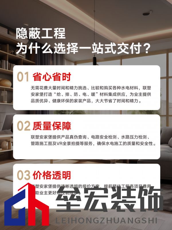??同時(shí),聯(lián)塑安家堡從售前 - 售中 - 售后提供全方位五星服務(wù)。在前期規(guī)劃階段,專業(yè)團(tuán)隊(duì)會(huì)根據(jù)業(yè)主需求,制定最適合的方案,規(guī)劃核心點(diǎn)就是選對服務(wù)團(tuán)隊(duì),而聯(lián)塑無疑是最佳選擇。聯(lián)塑憑借多年的行業(yè)經(jīng)驗(yàn),對隱蔽工程有著深刻的理解,能夠精準(zhǔn)把握業(yè)主需求。在施工過程中,嚴(yán)格按照標(biāo)準(zhǔn)執(zhí)行,切實(shí)解決各種家裝隱蔽工程難題。即使在售后,若出現(xiàn)任何問題,聯(lián)塑的專業(yè)售后團(tuán)隊(duì)也會(huì)及時(shí)響應(yīng),迅速處理。這種全方位的服務(wù),讓家裝實(shí)現(xiàn)省時(shí)、省心、省力,真正做到讓業(yè)主無憂。
