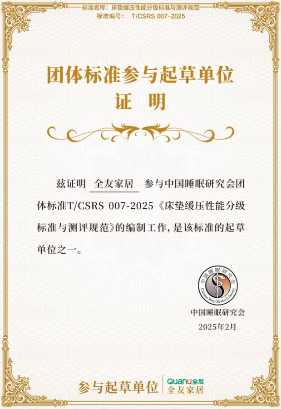 這些數據背后,暴露出傳統(tǒng)睡眠解決方案的結構性矛盾——當個性化需求遭遇標準化產品設計,大多數人不得不通過分房睡或犧牲舒適度來維持親密關系。全友家居洞察到市面上傳統(tǒng)床墊軟硬度較為單一,難以滿足女生與男生之間存在的差異化睡眠需求,特別是對于夫妻、情侶以及子女同床的情況,左右分區(qū)床墊的重要性日益凸顯。 為進一步科學規(guī)范床墊性能,全友聯(lián)合中國睡眠研究會,共同起草制訂了《床墊緩壓性能分級標準與測評規(guī)范》,以科學分級重新構建深度睡眠的理論基礎,為床墊產品的研發(fā)和消費者的選擇提供更具科學性的依據,推動整個睡眠行業(yè)向更健康、更科學的方向發(fā)展。