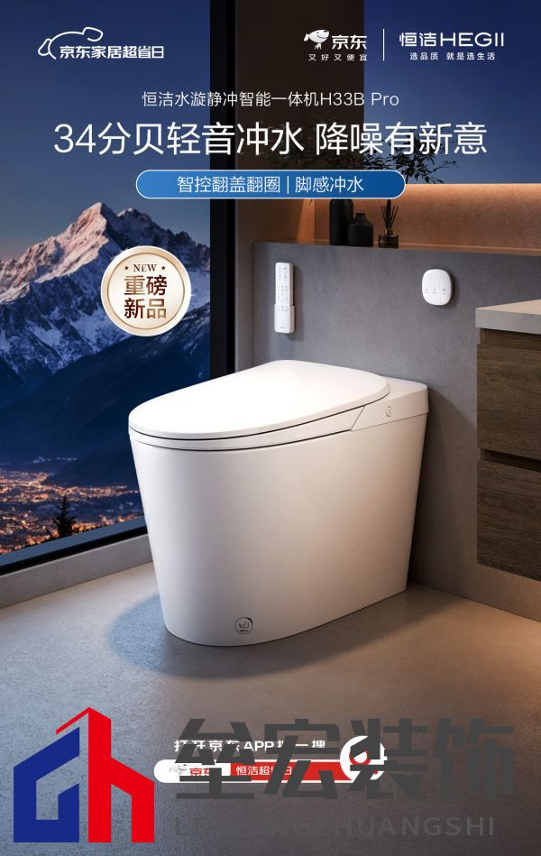 ??其中,搭載恒潔水漩靜沖系統(tǒng)的H33B Pro智能一體機(jī),雙泵助力疊加主動(dòng)降噪技術(shù),沖水噪音低至約34分貝,為用戶營(yíng)造出圖書(shū)館級(jí)靜謐的使用環(huán)境,且零水壓也能強(qiáng)勁排污,解決了高層住戶或老舊小區(qū)水壓不足的難題。此外,配備隨心貼控制翻圈翻蓋和沖水,隱藏式腳感功能靠近即沖,更是便捷與衛(wèi)生兼?zhèn)洹?/p>