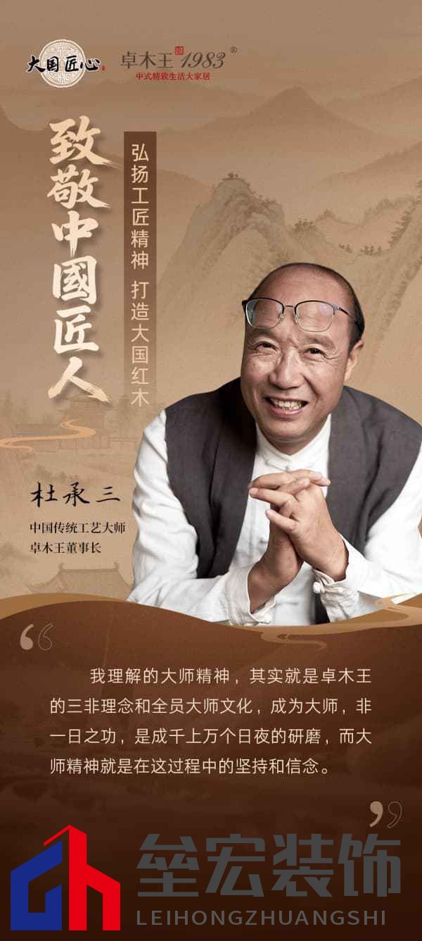 | 五一國際勞動節(jié),不僅是對勞動者的贊美,更是對匠心精神最深情的禮贊。在這個屬于勞動者的節(jié)日里,讓我們走進(jìn)卓木王,感受傳統(tǒng)木藝與現(xiàn)代匠心碰撞出的璀璨光芒。 匠心傳承:大師精神鐫刻悠長時光 卓木王董事長杜承三大師,十七歲執(zhí)刀木作,五十載深耕東陽木雕,將“非真材實料不足以取信,非精湛工藝不足以立名,非大師之作不足以傳世”的“三非理念”刻入企業(yè)基因。