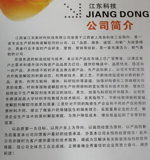 而這些高效優(yōu)質(zhì)減水劑是為了適應(yīng)當(dāng)前環(huán)保要求,因?yàn)?,陶瓷企業(yè)廢料必須要循環(huán)利用,天然優(yōu)質(zhì)土料開采過量逐漸減少,尤其是采用鋰電行業(yè)加工提鋰后的副產(chǎn)土料(長石、高嶺土)解膠性能變差狀態(tài)下,能夠滿足陶瓷生產(chǎn)工藝技術(shù)要求而專門定制。 因此,江東新材料順應(yīng)當(dāng)前形勢,做好陶瓷企業(yè)售前、售后服務(wù)的同時(shí),創(chuàng)新發(fā)展適應(yīng)的高效產(chǎn)品。從而避開一般陶企輔助生產(chǎn)一般水玻璃、偏硅酸鈉減水劑低效產(chǎn)品的同質(zhì)化惡性競爭局面。