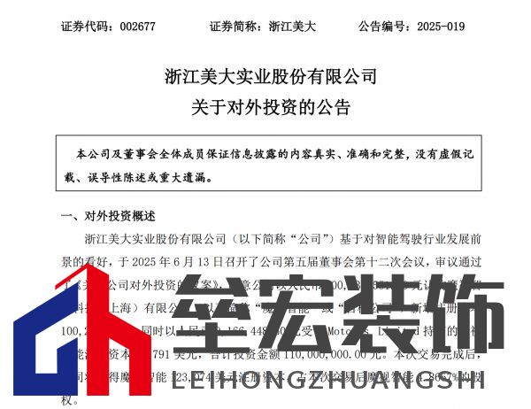??日前,“集成灶第一股”浙江美大發(fā)布公告,擬跨界投資智能駕駛領(lǐng)域。 ??公告顯示,基于對(duì)智能駕駛行業(yè)前景的看好,浙江美大于6月13日召開(kāi)董事會(huì)會(huì)議,同意以1.01億元認(rèn)購(gòu)魔視智能科技(上海)有限公司(下稱“魔視智能”)新增注冊(cè)資本10.03萬(wàn)美元。 ??同時(shí),公司以916.64萬(wàn)元受讓Motovis Limited持有的魔視智能注冊(cè)資本2.28萬(wàn)美元,合計(jì)投資金額1.1億元人民幣。交易完成后,浙江美大將持有魔視智能12.31萬(wàn)美元注冊(cè)資本,占其增資后總股本的4.8657%。