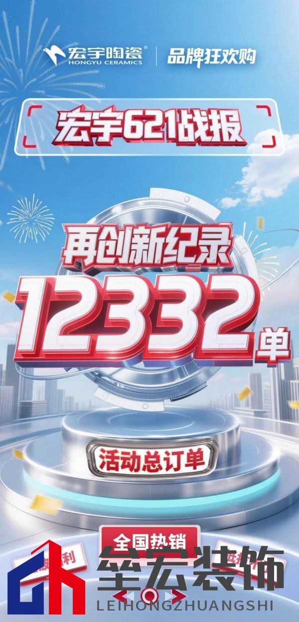??宏宇陶瓷618期間再創(chuàng)新紀錄12332單,總訂單數(shù)同比增長138%!品牌增長勢頭強勁,用戶活躍度創(chuàng)新高!本次活動實現(xiàn)全網(wǎng)總曝光3550萬,總曝光次數(shù)797萬,累計總場觀119萬,抖音短視頻總曝光1753萬!