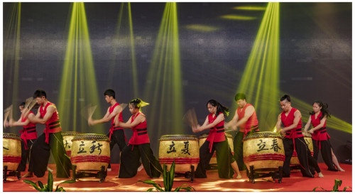 現(xiàn)場展示了協(xié)會三十年的發(fā)展歷程和三十年行業(yè)功勛人物榮譽榜,會員們在特設(shè)的相框里合影留念。 慶祝節(jié)目有《節(jié)鼓》、《望月》等。